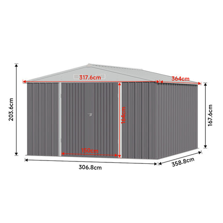 Grey 364cm Outdoor Garden Metal Storage Shed