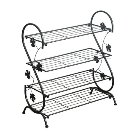 4 Tier Iron Shoe Rack Leaf Decoration, Black