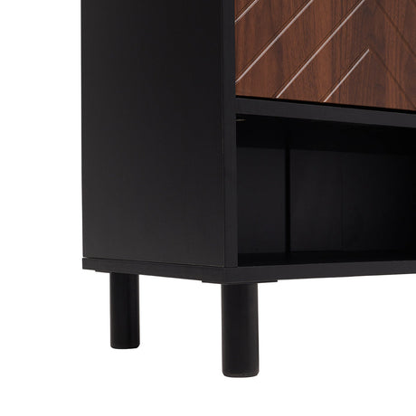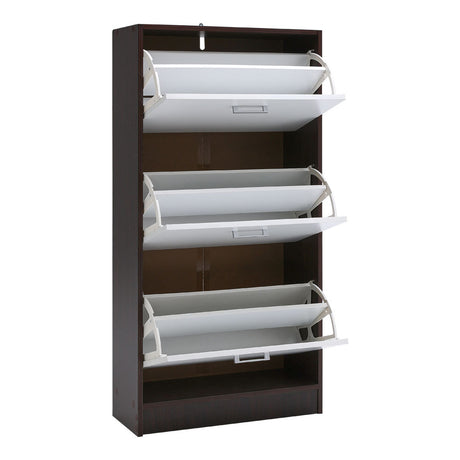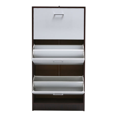 Brown 6 Tier Black Shoe Cabinet with Doors