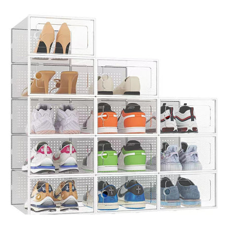 White 33.5cm 12pcs Clear Plastic Shoe Storage Boxes