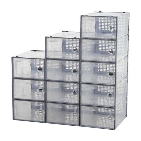 Set of 12 Plastic Transparent Stackable Shoe Storage Box