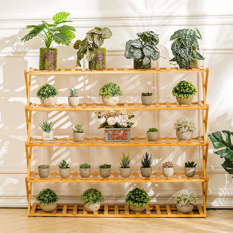 5 Tier Bamboo Flower Stand Rack Indoor for Patio Garden Balcony