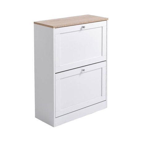 White Wooden 2 Drawer Flip Down Shoe Cabinet