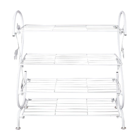 4 Tier Iron Shoe Rack Leaf Decoration, White