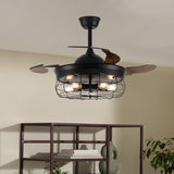 Black Cage Style Ceiling Fan with Lights