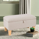 71CM Linen Storage Organizer Ottoman Footstool, Beige
