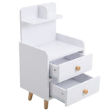 Wood White Bedside Table Nightstand With two Drawers