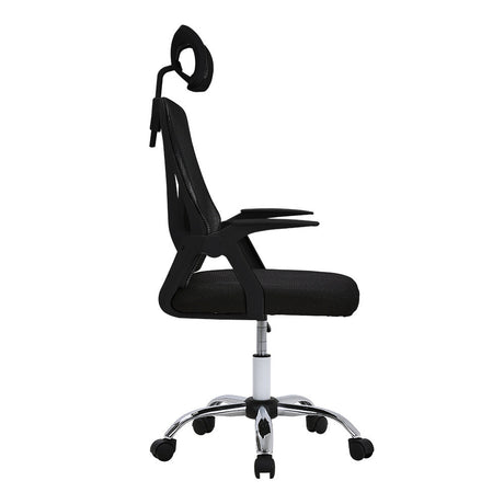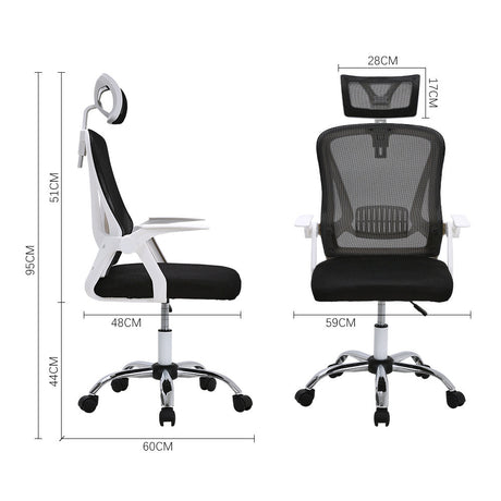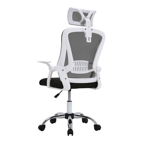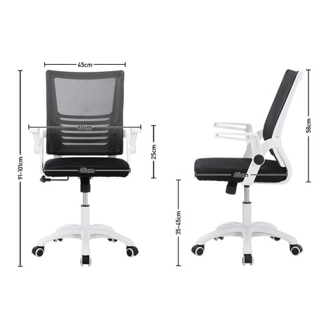 Mesh Office Chair Ergonomic Design with White Flip up Armrests Black