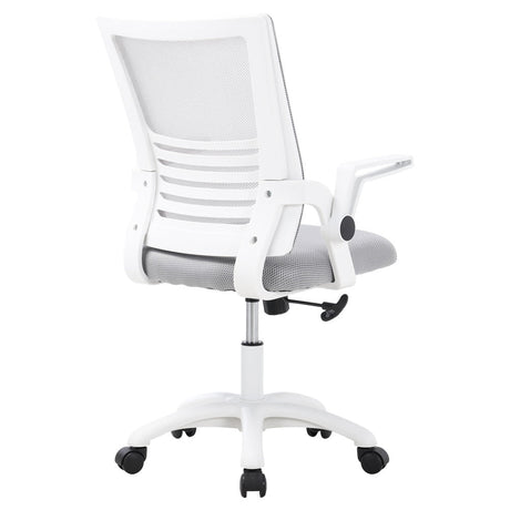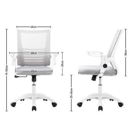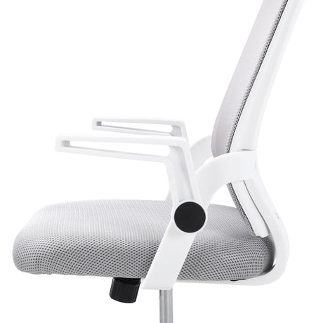 Mesh Office Chair Ergonomic Design with White Flip up Armrests, Grey