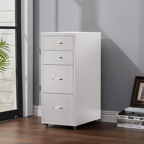 Office Rolling File Cabinet with 4 Drawers Shelf and Wheels, White
