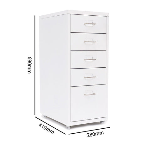 Office Rolling File Cabinet with 5 Drawers Shelf and Wheels White
