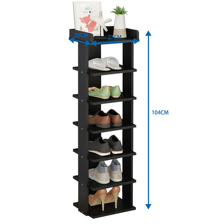 7 Tier Black Wood Shoe Rack Storage Shelf