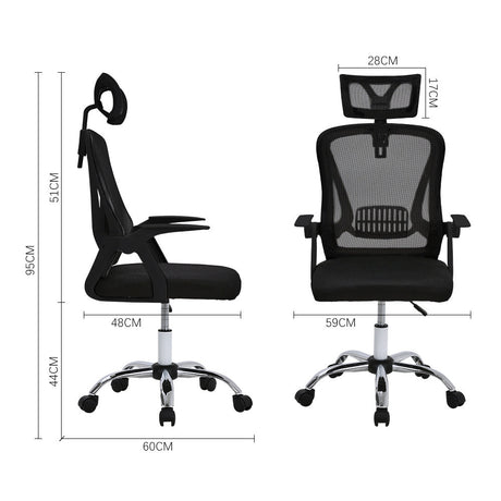Mesh Office Chair Ergonomic Design with Black Flip up Armrests, Black