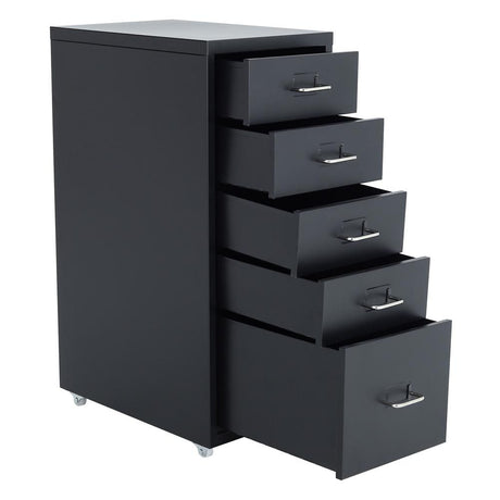 Office Rolling File Cabinet with 5 Drawers Shelf and Wheels, Black
