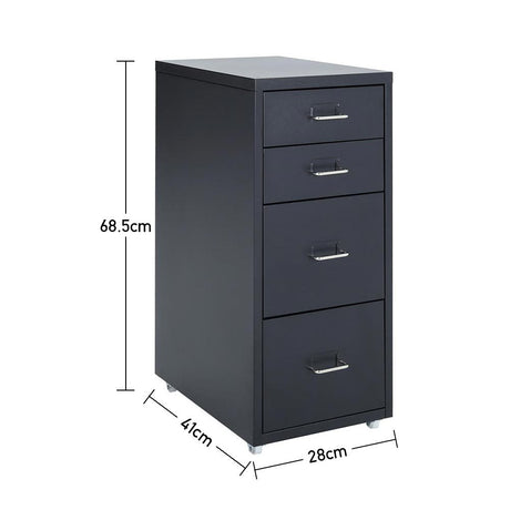 Office Rolling File Cabinet with 4 Drawers Shelf and Wheels, Black