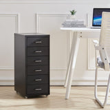 Office Rolling File Cabinet with 6 Drawers Shelf and Wheels, Black