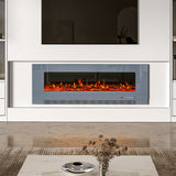 Grey 50 Inch Wall Mounted LED Electric Fireplace with 9 Flame Colours