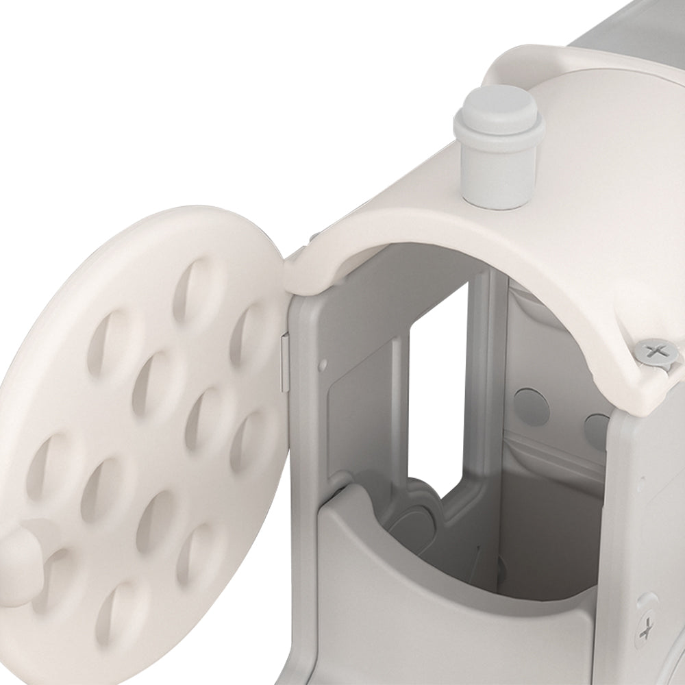 Add fun and functionality to your child’s room with this train-themed kids storage cabinet set. The locomotive can be positioned on either side, creating a playful design that sparks imagination. Featuring a combination of small and large pull-out drawers as well as closed cabinets, it offers versatile storage for toys, books, and personal items. Crafted from high-quality, non-toxic HDPE, this durable and safe organizer keeps your child’s room tidy while adding a whimsical touch that children will love.