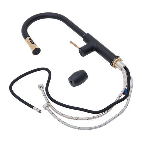 Prerinse Pull Down Swivel Kitchen Faucet,Black and Gold