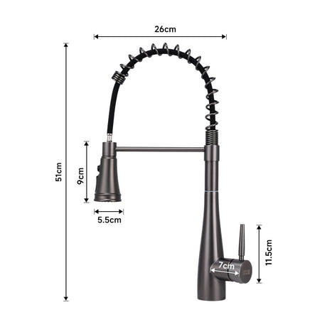 Rotable Pulldown Kitchen Mixer Tap with Spring Spout Grey