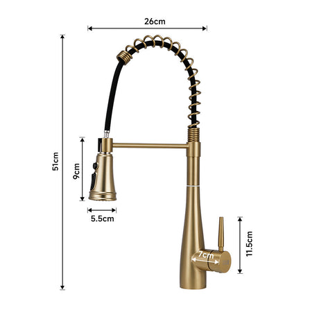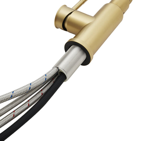 Rotable Pulldown Kitchen Mixer Tap with Spring Spout Brushed Gold