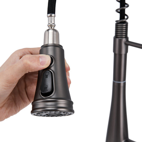 Grey Stainless Steel Kitchen Faucet with Pull Down Spring Spout Single Hole Faucet Grey
