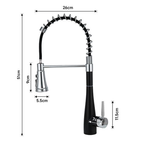 Chrome Black Stainless Steel Kitchen Faucet with Pull Down Spring Spout