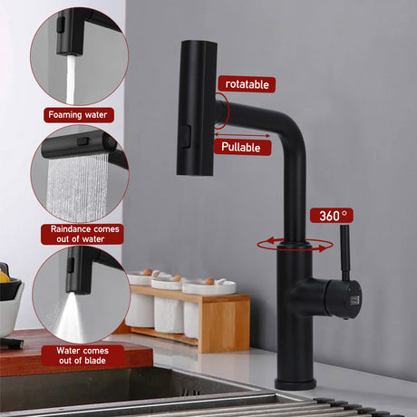 Black Kitchen Sink Faucet with Pull Out Sprayer