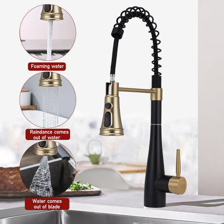 Gold Black Stainless Steel Kitchen Faucet with Pull Down Spring Spout