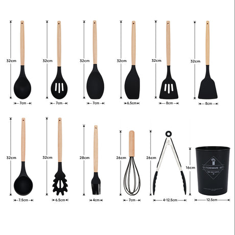 Black 11 Piece Silicone Kitchen Utensil Set for Nonstick Cookware