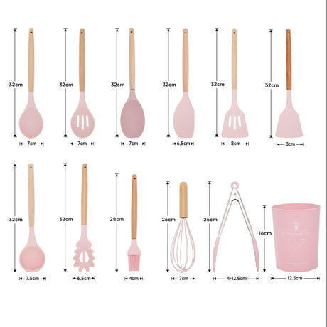 Pink 11 Piece Silicone Kitchen Utensil Set for Nonstick Cookware