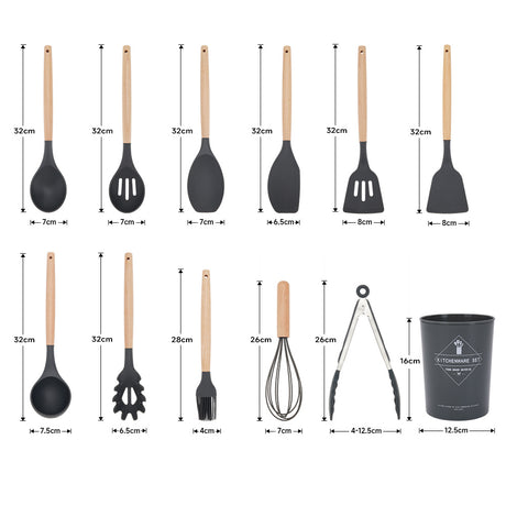 Grey 11 Piece Silicone Kitchen Utensil Set for Nonstick Cookware