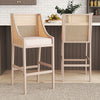 2Pcs Natural Rattan Bar Stools Kitchen Stools with Backrest,White