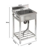 This commercial-grade stainless-steel sink set is perfect for any restaurant or food service establishment. With its durable construction and practical design, this sink set is ideal for preparing and washing dishes, utensils, and food. The set includes a single-bowl sink, a high-quality faucet, a prep and utility washing hand basin, and a storage shelf, making it an all-in-one solution for your kitchen needs.