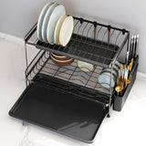 Black 2 Tier Dish Drying Rack with Drainboards