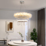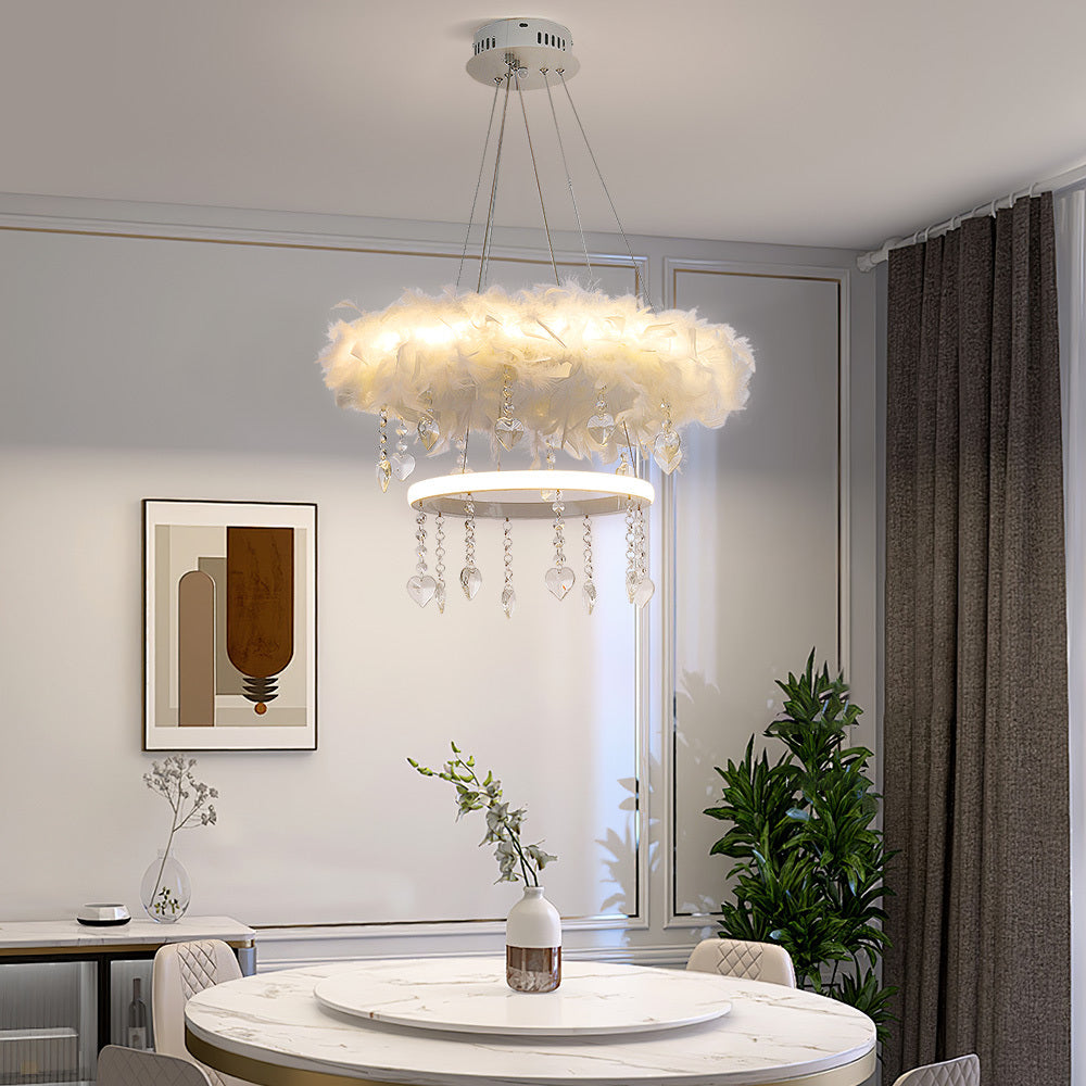 White Double Layer Feather LED Pendant Light with Crystals is backordered and will ship as soon as it is back in stock.
