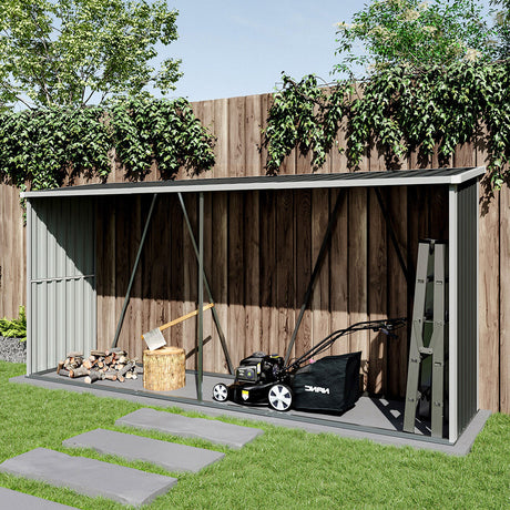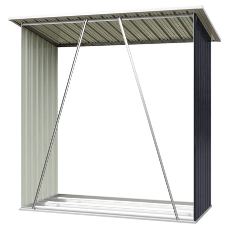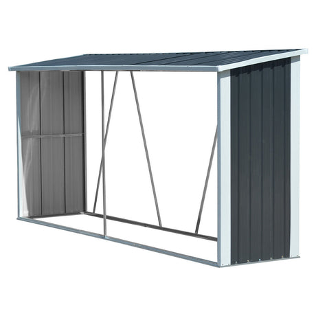 Garden Outdoor Grey Metal Firewood Log Storage Shed