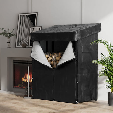Garden Firewood Log Shed Storage Stand Tool House Black