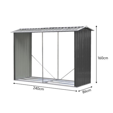 Charcoal Black Zinc Steel Firewood Log Storage Shed