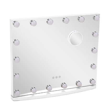 White Hollywood 18 LED Bulbs Make Up Cosmetic Mirror With Magnifying Glass