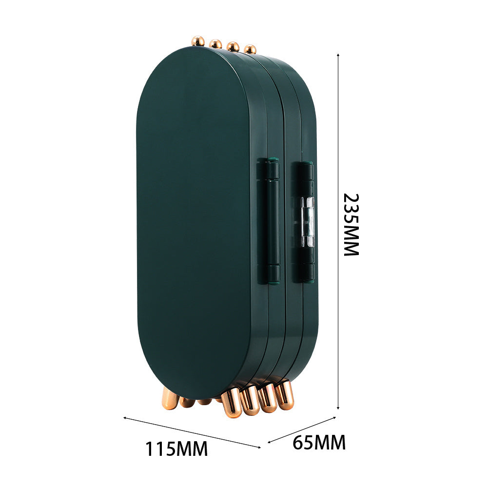 Green Dust Proof Jewelry Earring Necklace Storage Box with Mirror