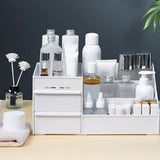 This functional makeup storage box consists of several compartments including drawers, a top tray and slots, your desktop space can be saved to a great degree with our organizer. The 2 drawers on the left side can slide smoothly for ease of use. A truly good helper that makes you access your makeup easily whenever you need them.