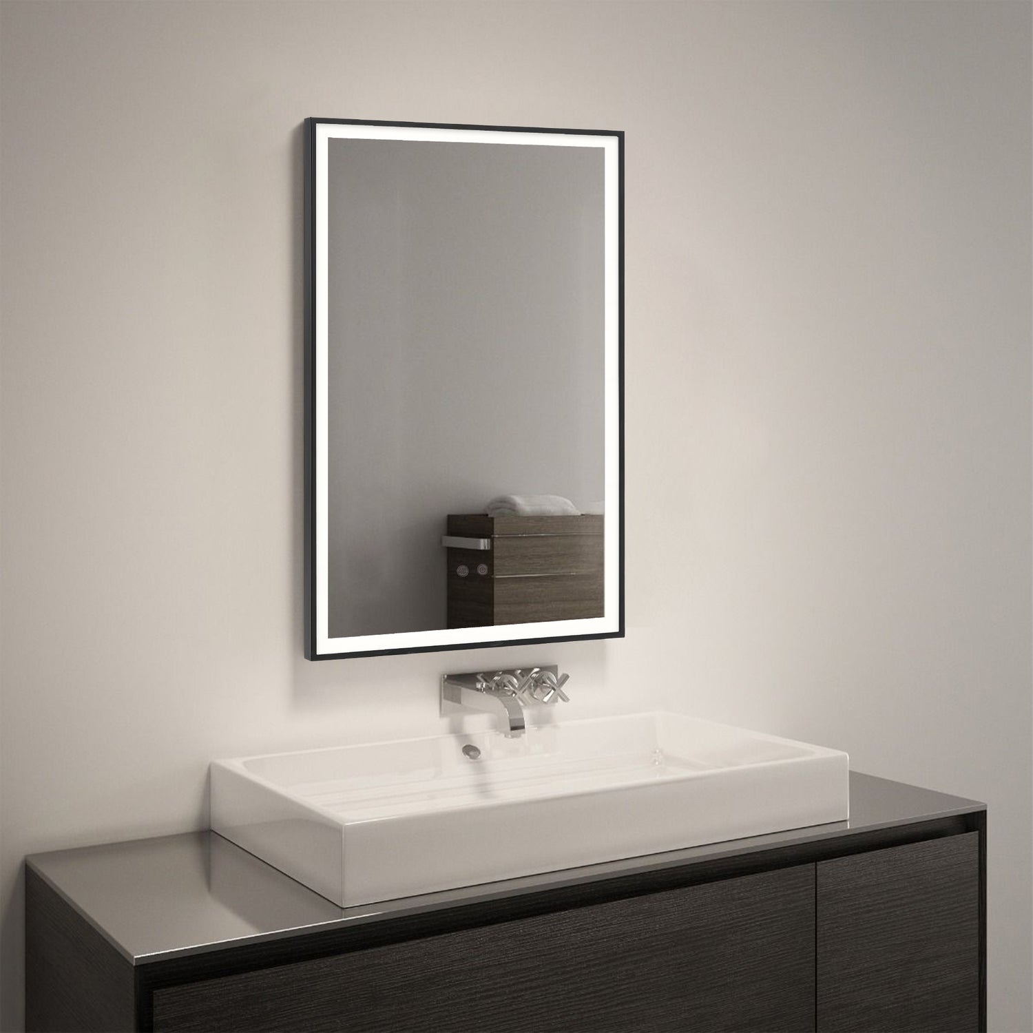 practicality. Boasting a clean rectangular frame with an LED light border, the