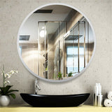 Modern Wall Mounted Slim Frame Round Mirror, White 50cm