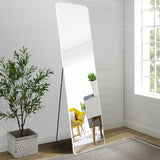 Enhance the style and functionality of your living space with this stunning floor mirror from . Designed to make a statement, this sleek and contemporary mirror will add a touch of elegance and depth to any room. The rectangular shape, combined with rounded corners, offers a unique and modern twist on a classic design. Whether you place it in your bedroom, living room, or hallway, this mirror is sure to become a focal point of your decor.
