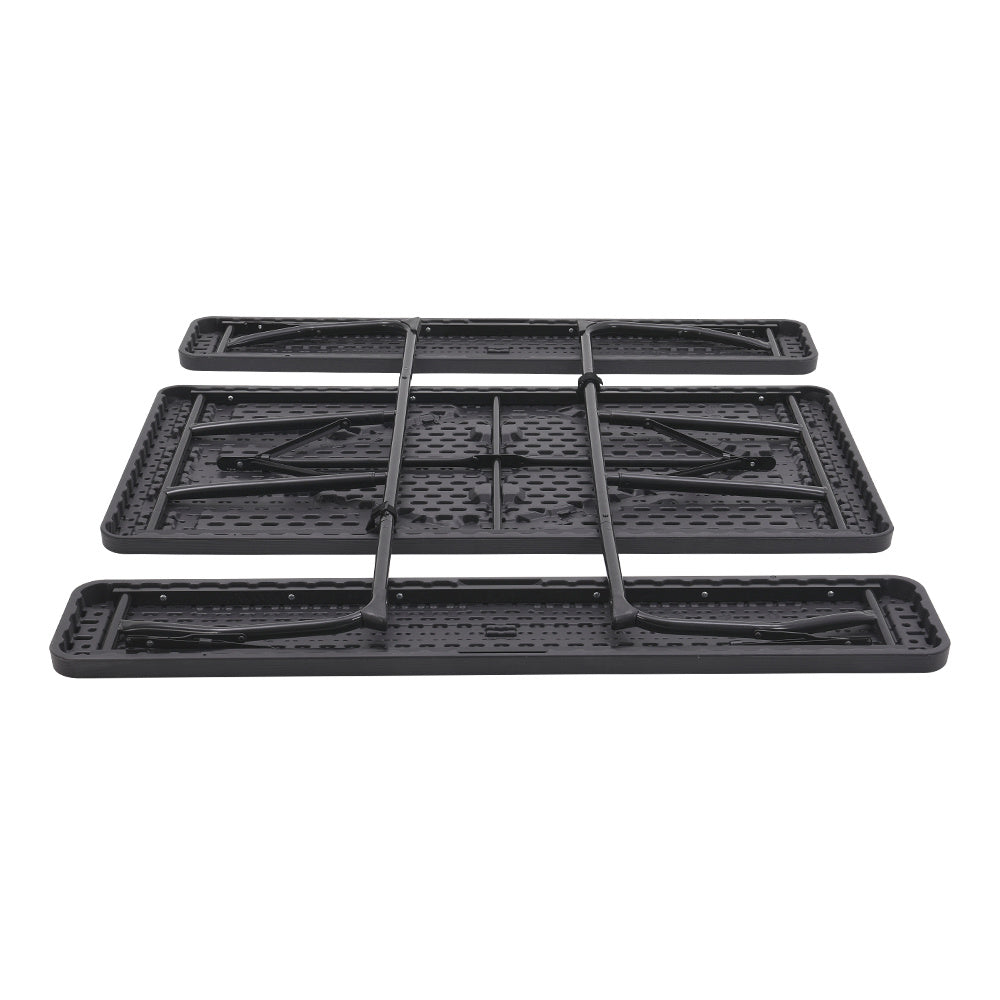 Black Foldable Picnic Table and Bench Set with Parasol Hole