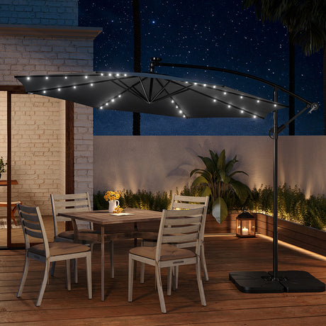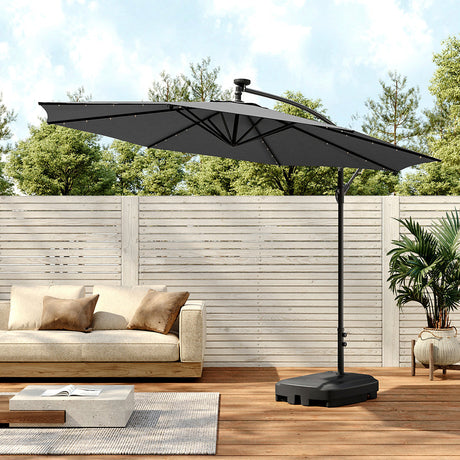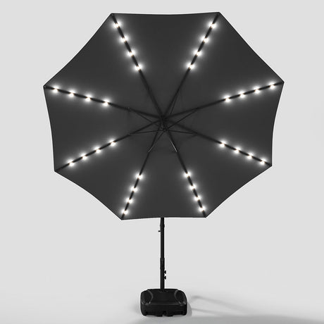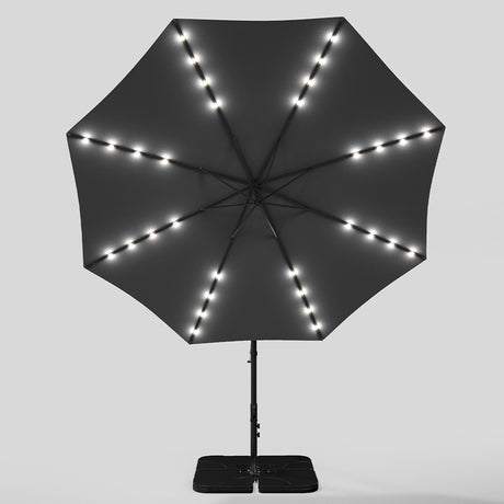 3M Large Garden Hanging LED Parasol Cantilever Sun Shade Banana Umbrella with Cross Base, Dark Grey