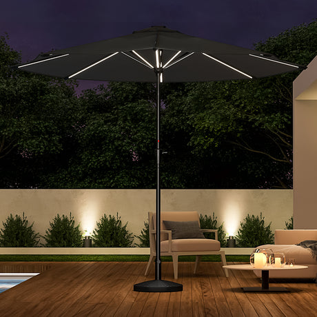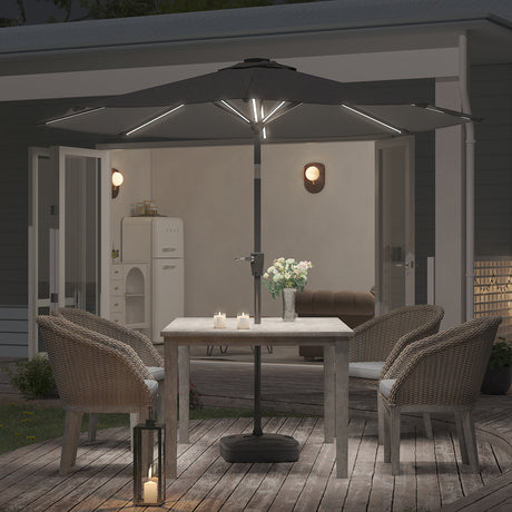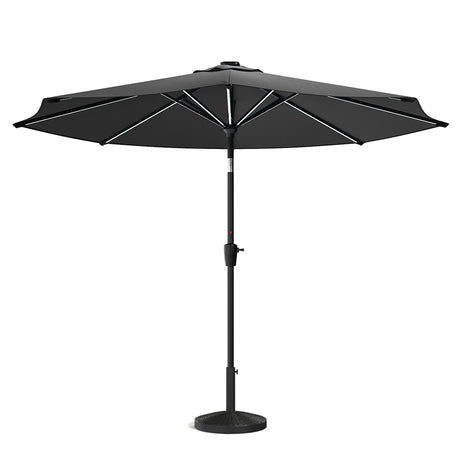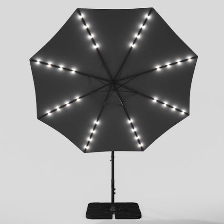3M Dark Grey Garden LED Light Parasol Outdoor Umbrella with Petal Base