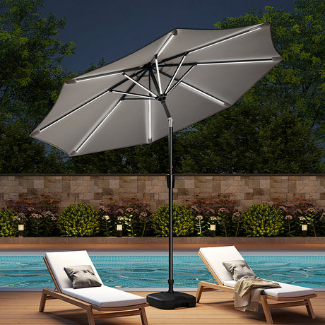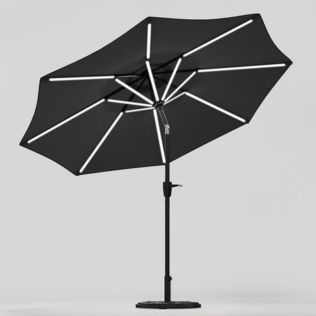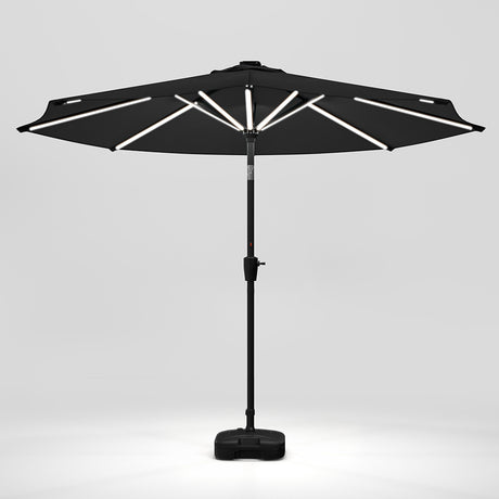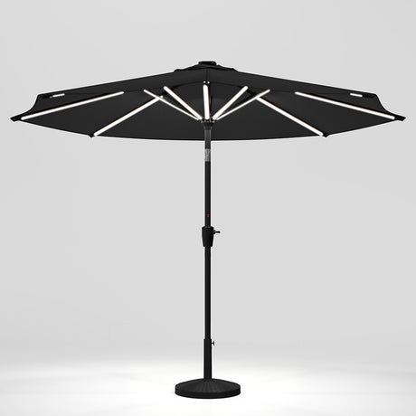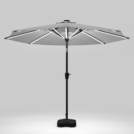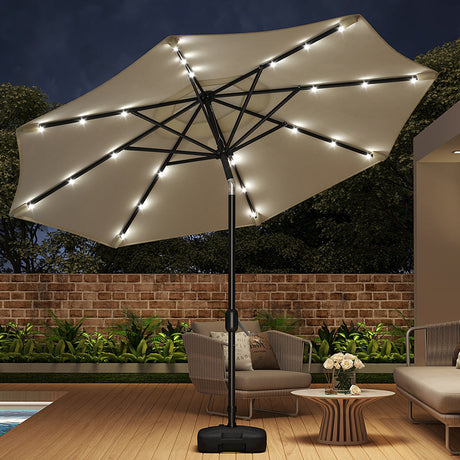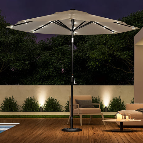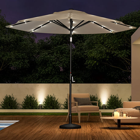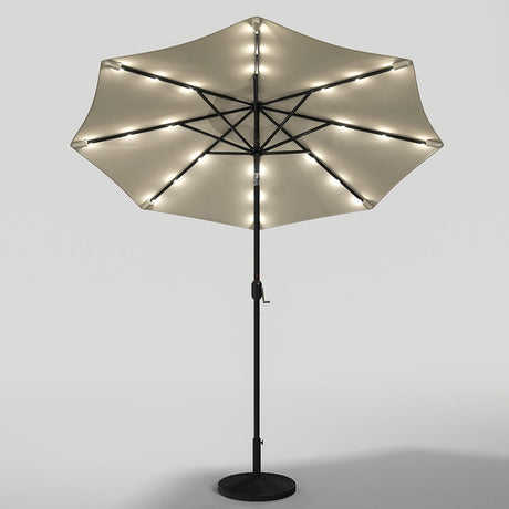 260cm H Outdoor 32 LED Lighted Patio Umbrella with Crank Lift System and Base