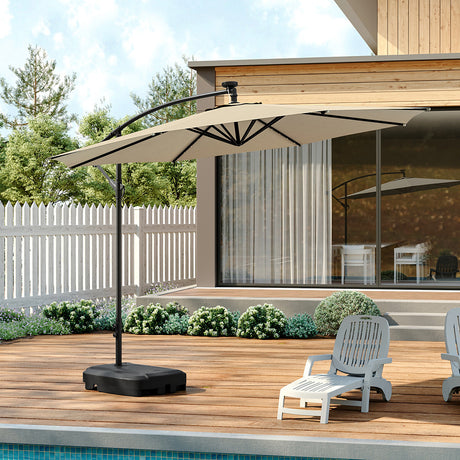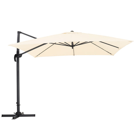 3M Large Garden Roma Tilting Aluminium Cantilever Parasol With Fan-shaped Base, Beige
